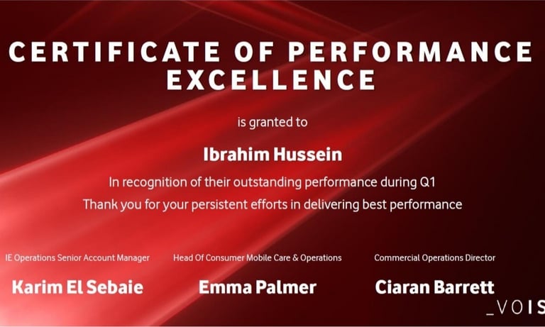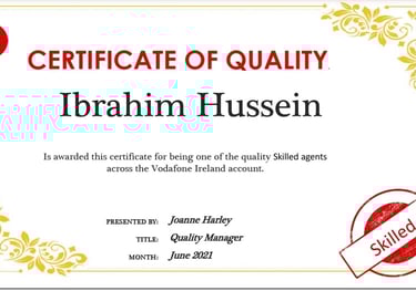 Awarded for being one of the quality skilled agents across the Vodafone Ireland account
